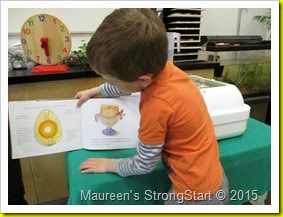 This morning we tried to ‘candle’ the eggs, to see if they are fertile. The first attempt using a box wasn’t dark enough.