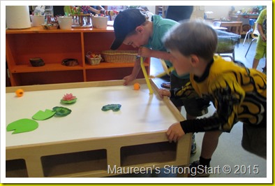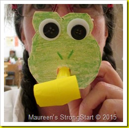 They coloured, added buttons for eyes and punched a hole to add the party blower for the frog’s tongue.