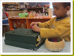 The children enjoyed emptying the box to start over as much as they enjoyed slipping the caps into the box.