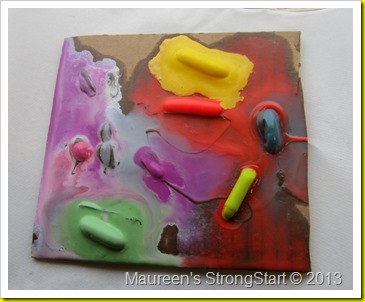on the internet. Crayons melted by using a blow dryer. Wow how