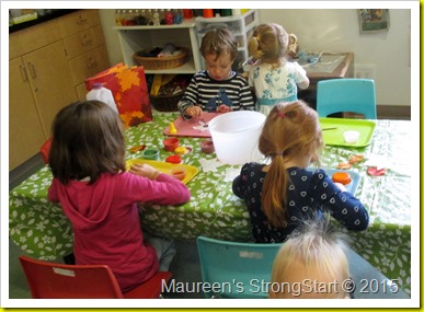 Using watercolour paints the children added colour to maple leaf shaped coffee filters.